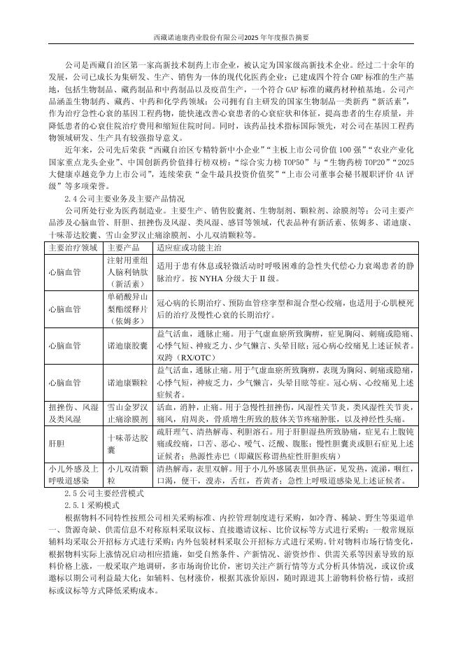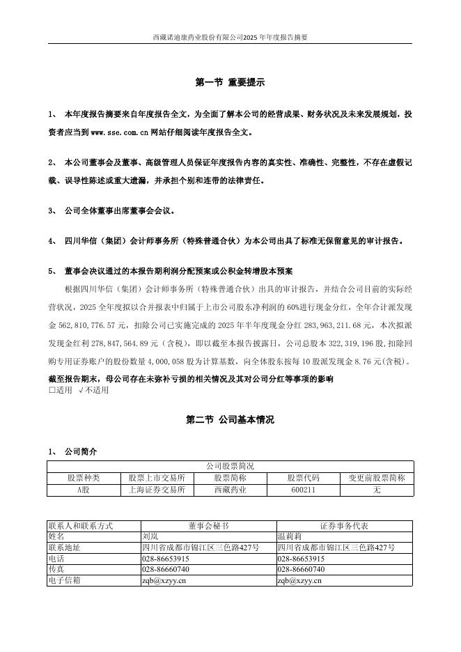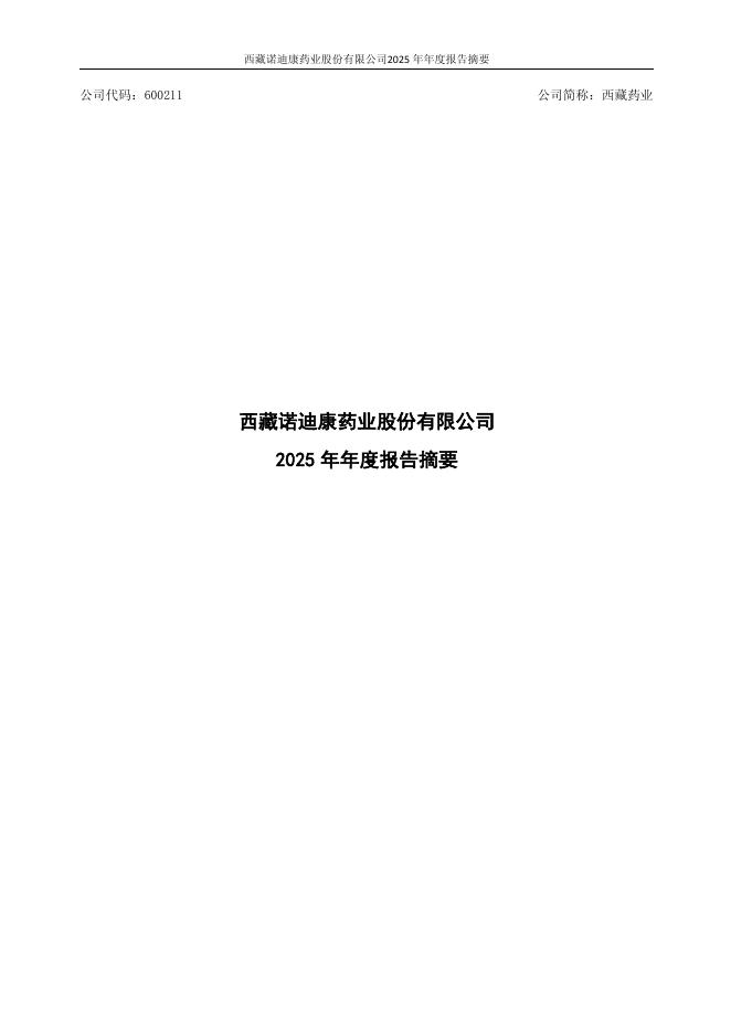 600211-西藏药业:西藏药业2025年年度报告摘要.pdf