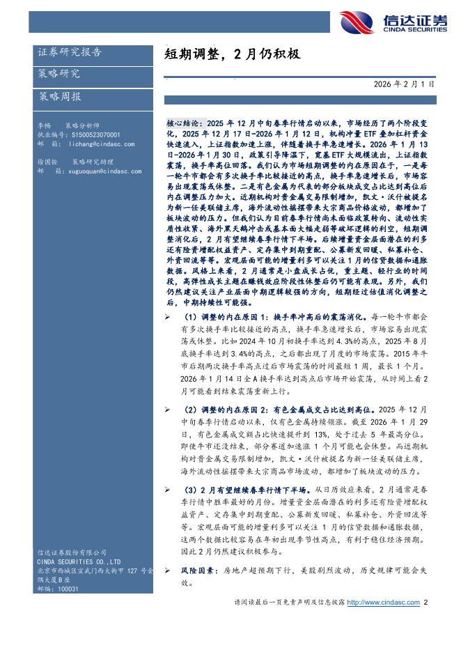 信达证券:策略周观点:短期调整,2月仍积极-260201.pdf