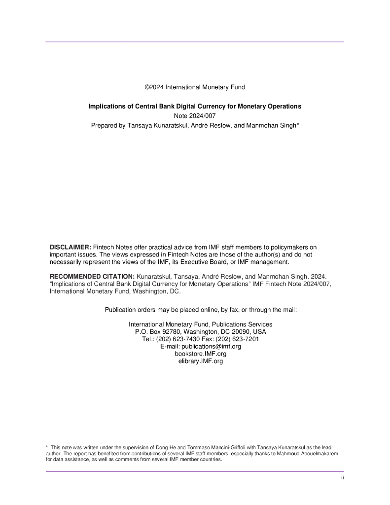 国际货币基金组织:2024年金融科技研究报告:中央银行数字货币对货币政策运行的影响(英文版).pdf
