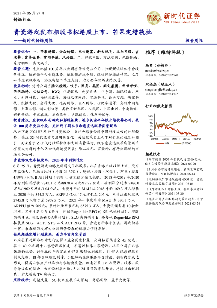 新时代证券:传媒周报:青瓷游戏发布招股书拟港股上市,芒果定增获批.pdf