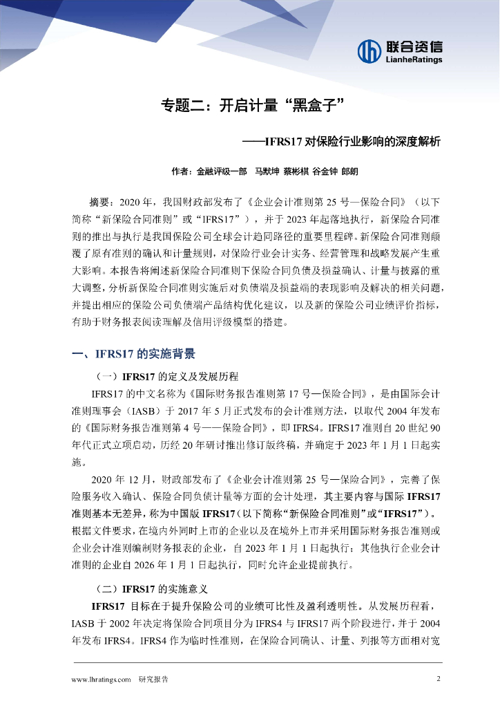 联合资信:IFRS17对保险行业影响的深度解析:专题二:开启计量“黑盒子”.pdf