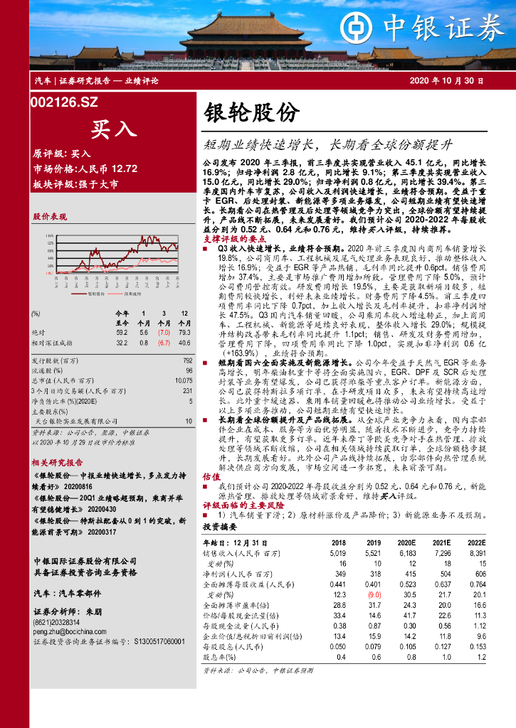 中银证券:银轮股份(002126)-短期业绩快速增长,长期看全球份额提升.pdf