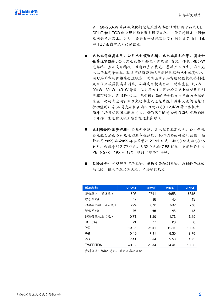 国海证券:盛弘股份(300693)-2023年上半年业绩点评:储能、充电桩业务表现亮眼,净利率提升明显.pdf