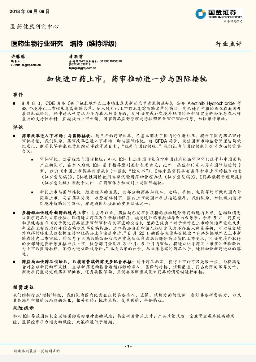 国金证券:医药生物行业研究:加快进口药上市,药审推动进一步与国际接轨.pdf
