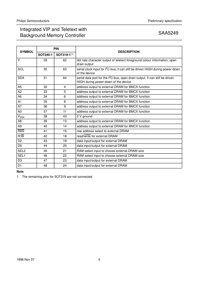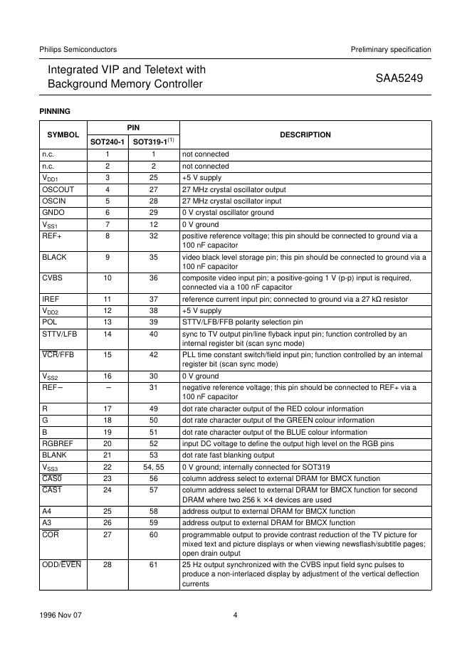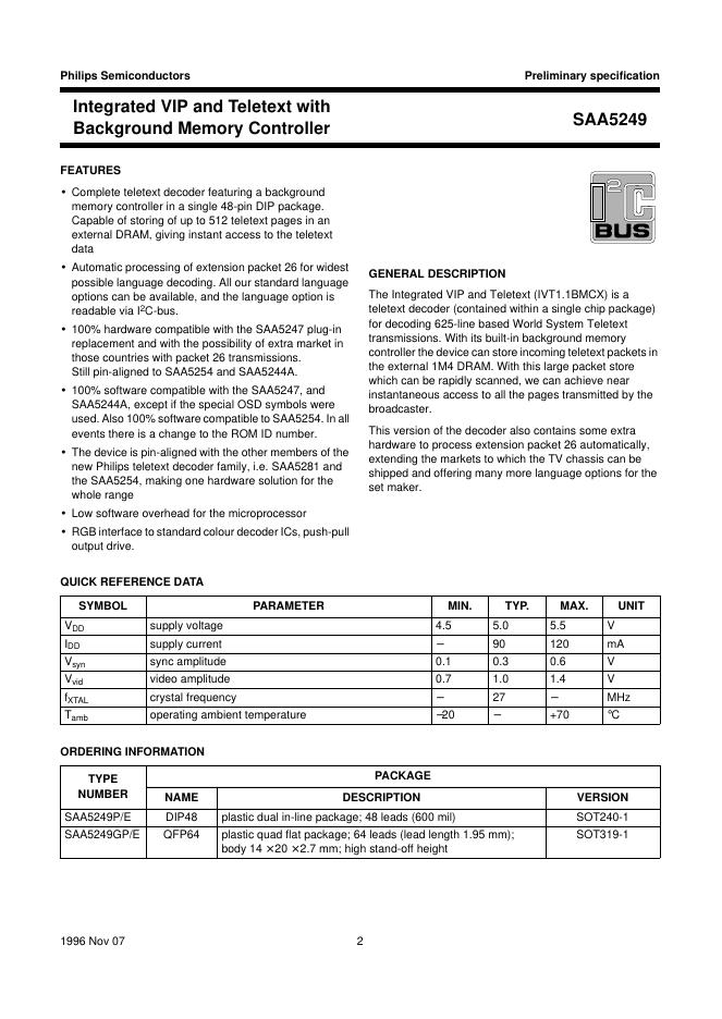 PHILIPS SAA5249 Integrated VIP and Teletext with Background Memory Controller (IVT1.1BMCX) 数据手册.pdf