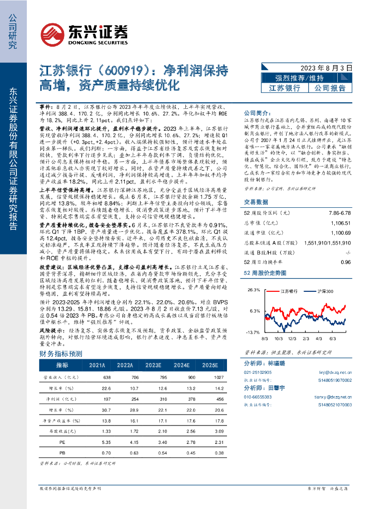 东兴证券:江苏银行(600919)-净利润保持高增,资产质量持续优化.pdf