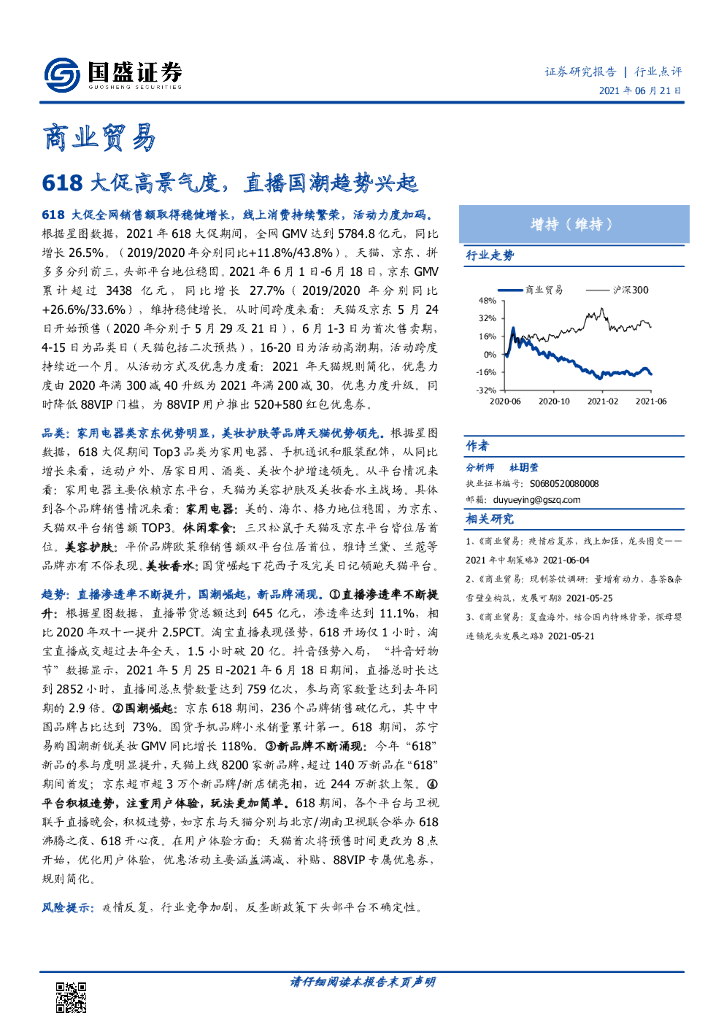 国盛证券:商业贸易行业点评:618大促高景气度,直播国潮趋势兴起.pdf