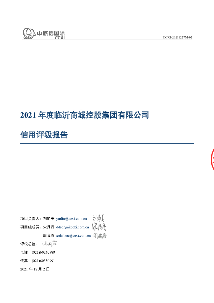 中诚信:临沂商城控股集团有限公司主体信用评级报告及跟踪评级安排.pdf