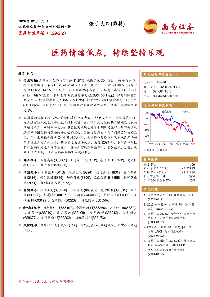 西南证券:医药行业周报:医药情绪低点,持续坚持乐观.pdf