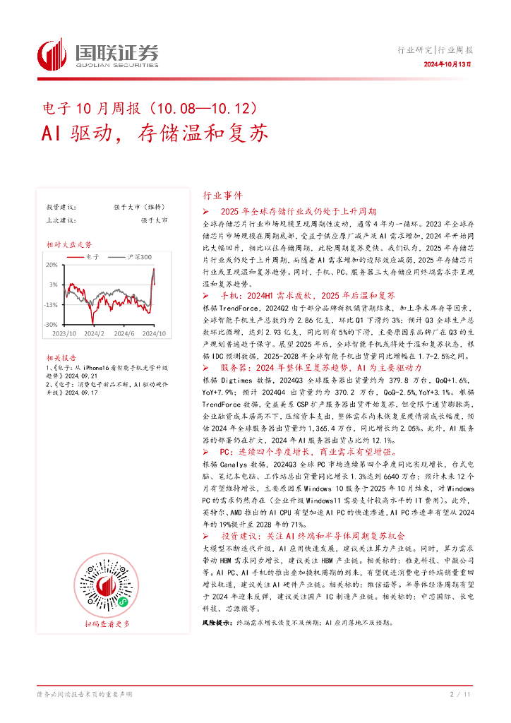 国联证券:电子10月周报:AI驱动,存储温和复苏.pdf