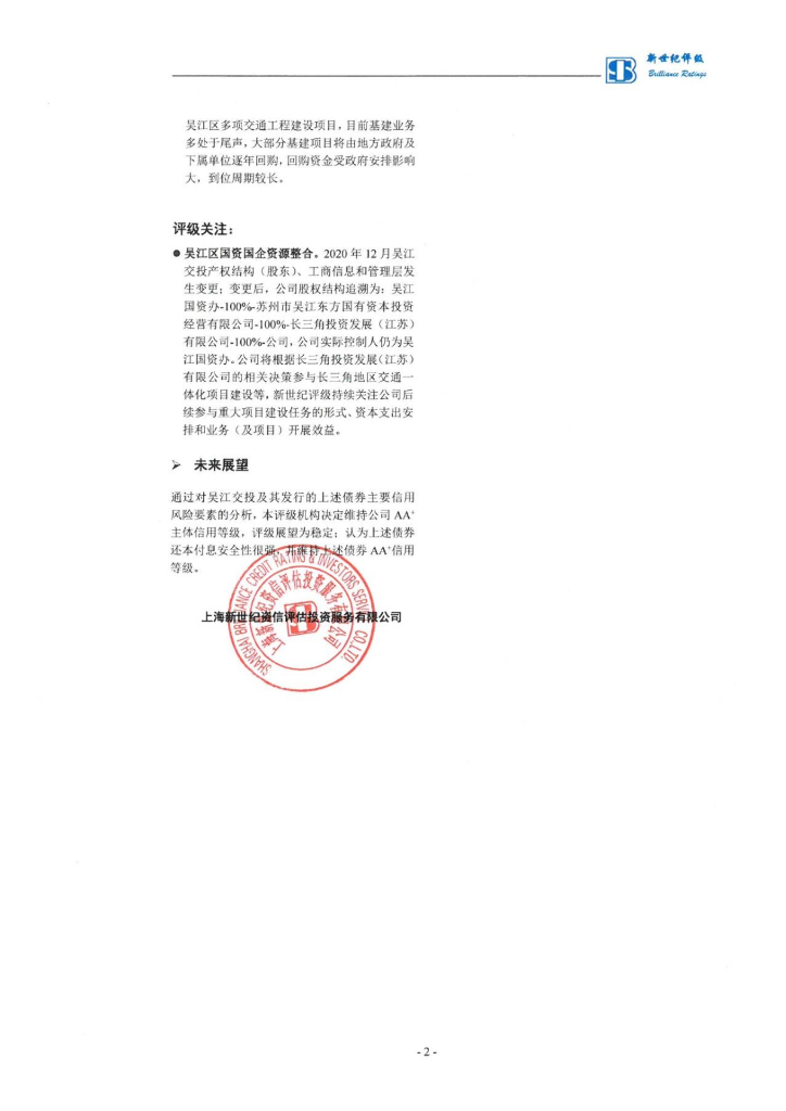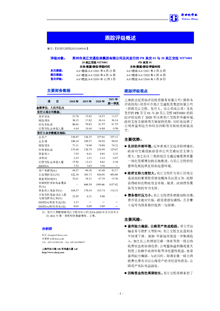 新世纪:苏州市吴江交通投资集团有限公司及其发行的PR吴交01与20吴江交投MTN001跟踪评级报告.pdf