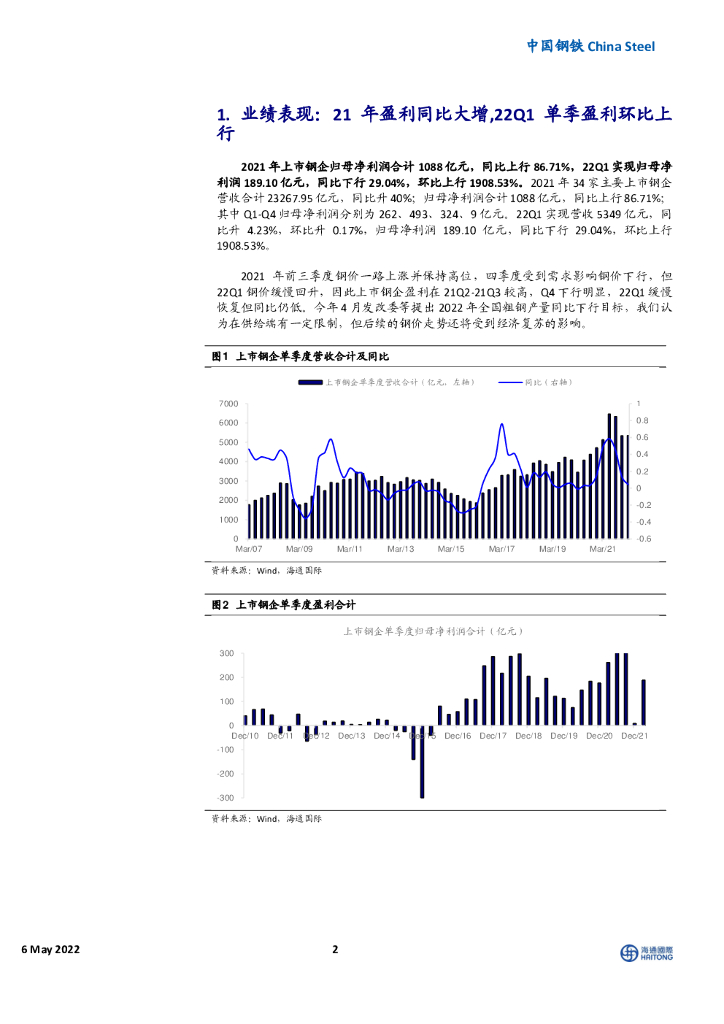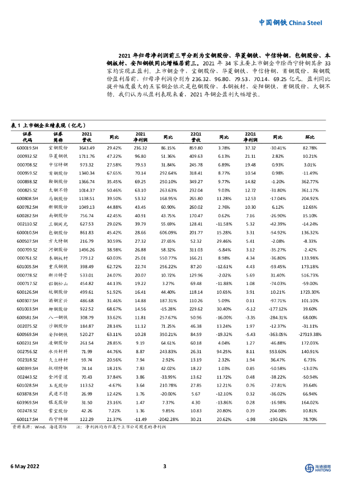 海通国际:中国钢铁:21年行业盈利同比大增,22Q1盈利环比上行.pdf