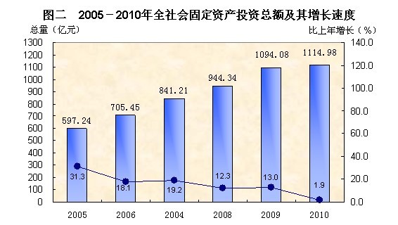注: 从2009年起全社会固定资产投资总额数包含跨区项目金额,2009年增速按同口径计算,比上年增长13.0%。