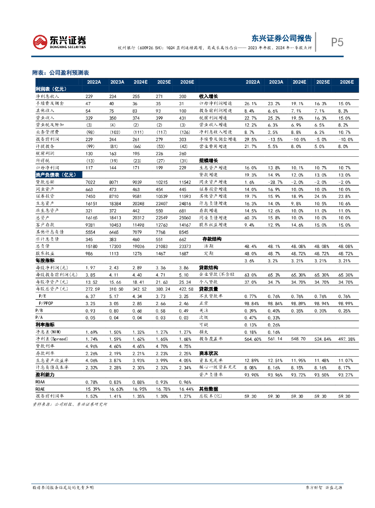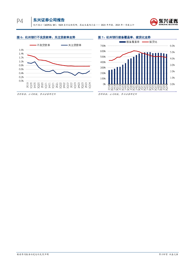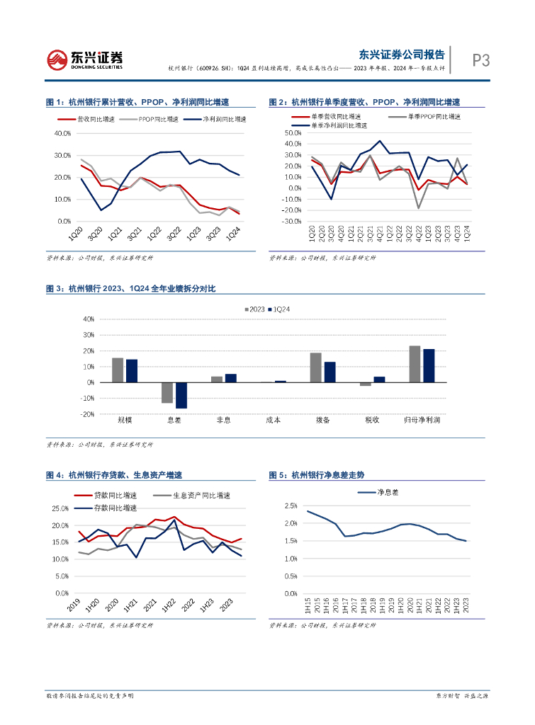 东兴证券:杭州银行(600926)-2023年年报、2024年一季报点评:1Q24盈利延续高增,高成长属性凸出.pdf
