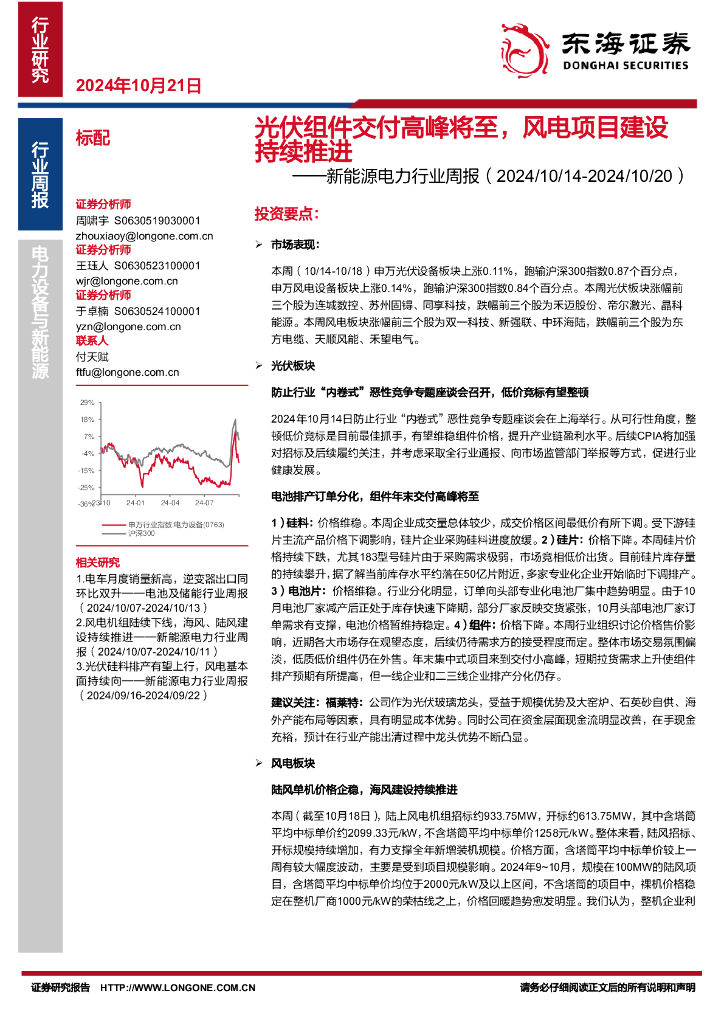 东海证券:新能源电力行业周报:光伏组件交付高峰将至,风电项目建设持续推进.pdf