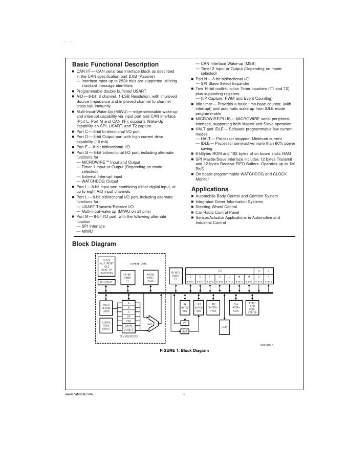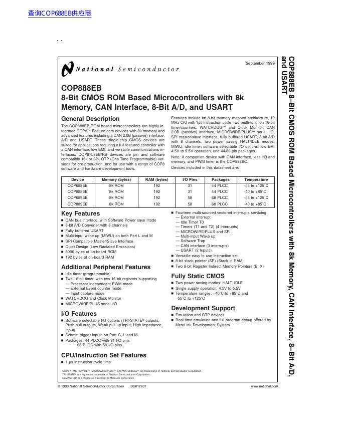 National Semiconductor COP888EB 8-Bit CMOS ROM Based Microcontrollers with 8k Memory, CAN Interface, 8-Bit A/D, and USART 数据手册.pdf