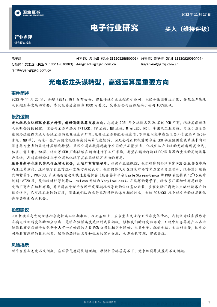 国金证券:电子行业点评:光电板龙头谋转型,高速运算是重要方向.pdf