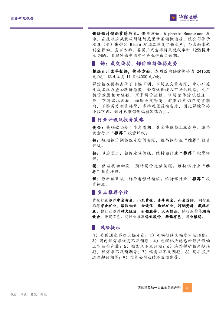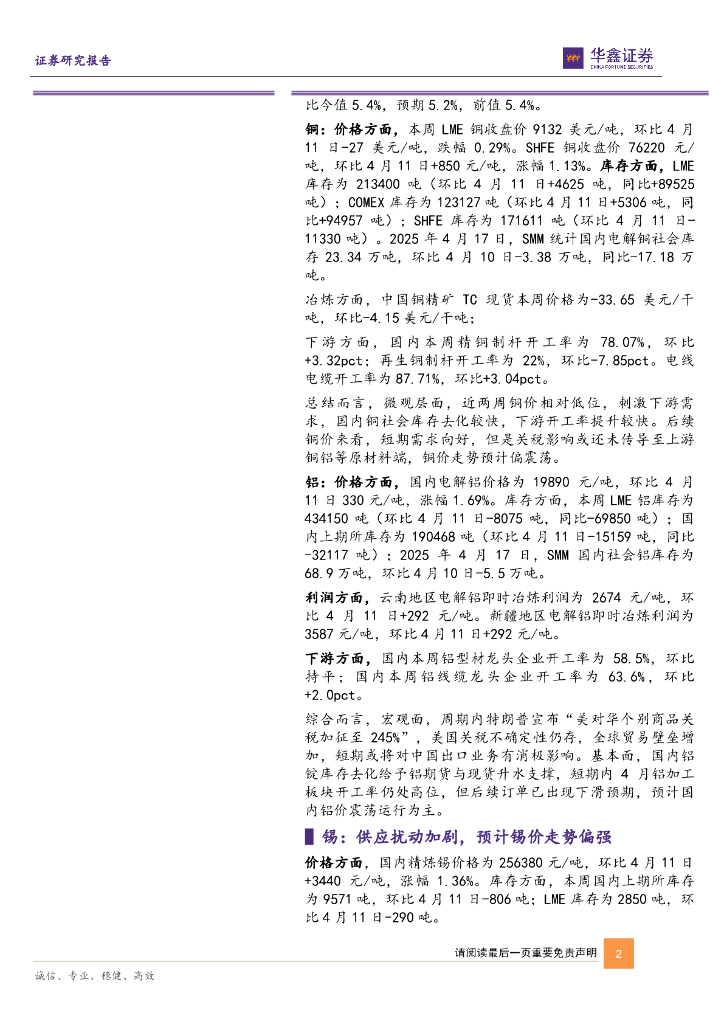 华鑫证券:有色金属行业周报:关税影响美国经济滞涨风险增大,金价支撑仍然强劲.pdf