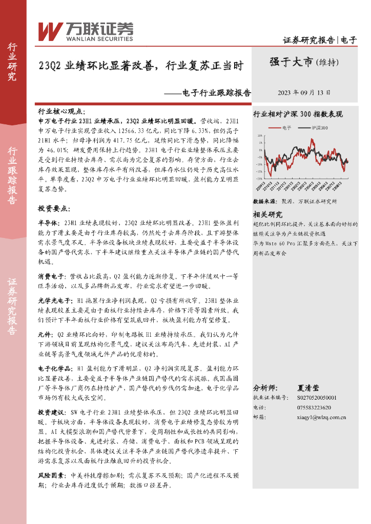 万联证券:电子行业跟踪报告:23Q2业绩环比显著改善,行业复苏正当时.pdf
