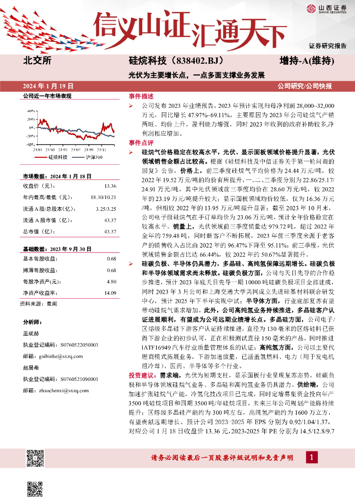 山西证券:硅烷科技(838402)-光伏为主要增长点,一点多面支撑业务发展.pdf