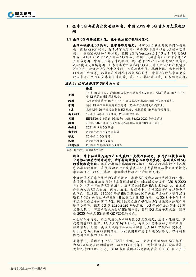 国金证券:通信行业研究周报:全球5G部署商业化进程加速,中国2019年5G资本开支或超预期.pdf