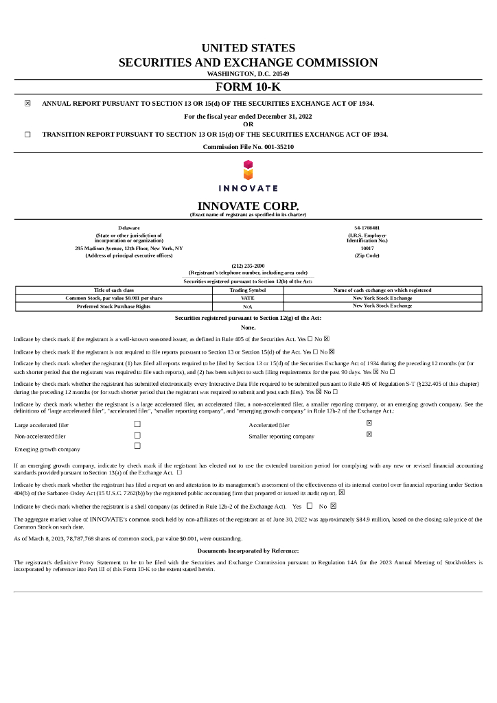 Innovate Corp.(VATE)2022财年年度报告(英文版).pdf