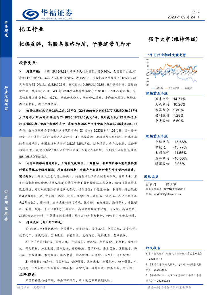 华福证券:化工行业:把握反弹,高股息策略为盾,子赛道景气为矛.pdf