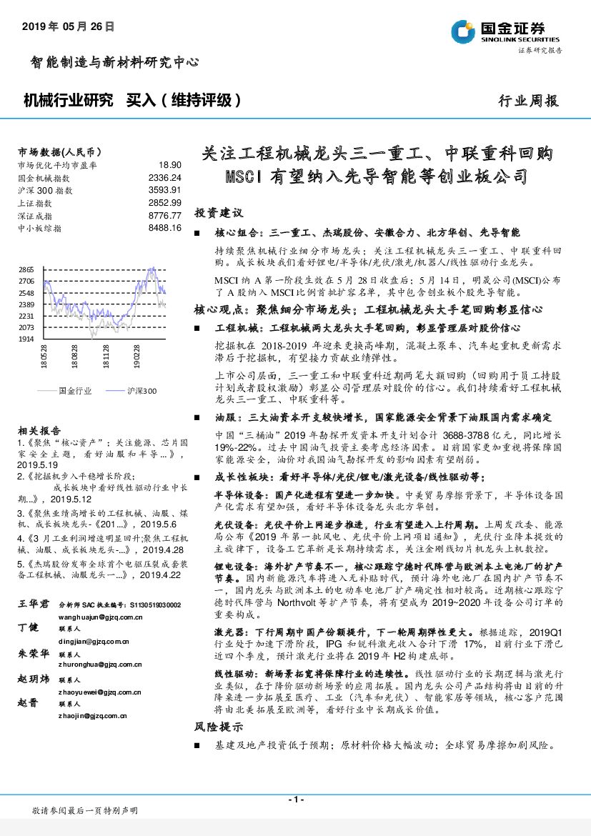 国金证券:机械行业研究:关注工程机械龙头三一重工、中联重科回购MSCI有望纳入先导智能等创业板公司.pdf