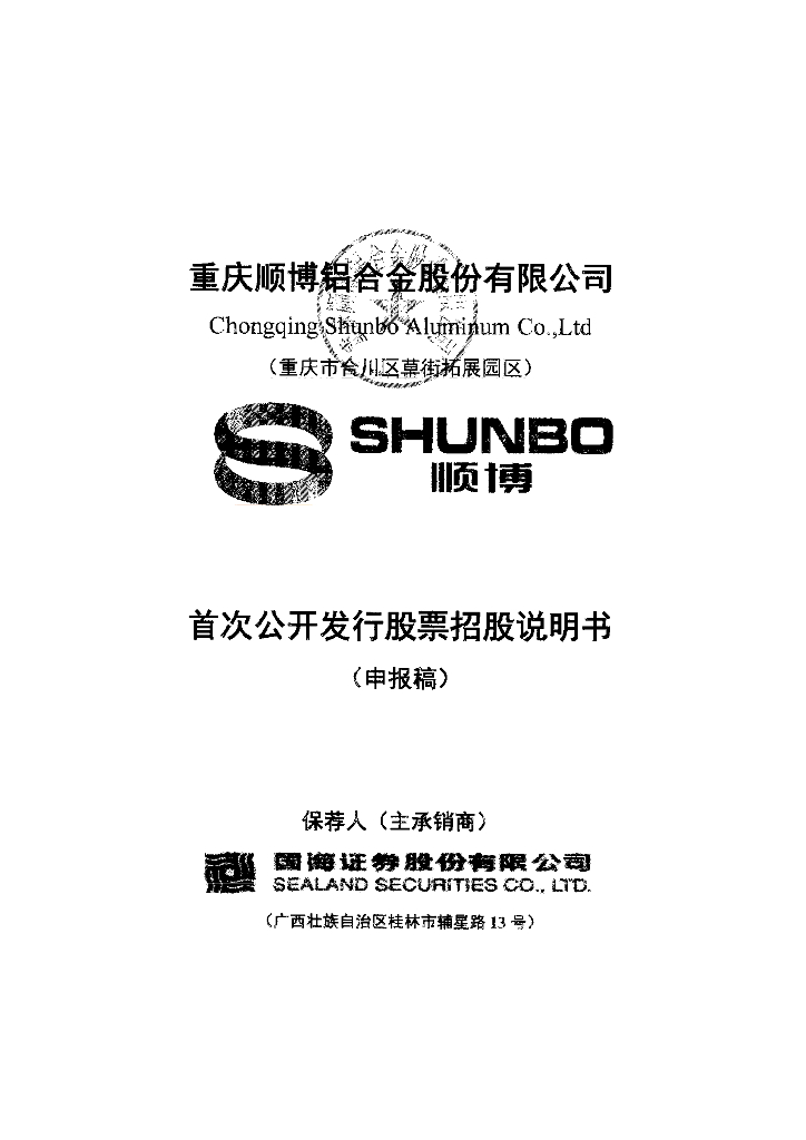 重庆顺博铝合金股份有限公司深交所主板IPO上市招股说明书.pdf