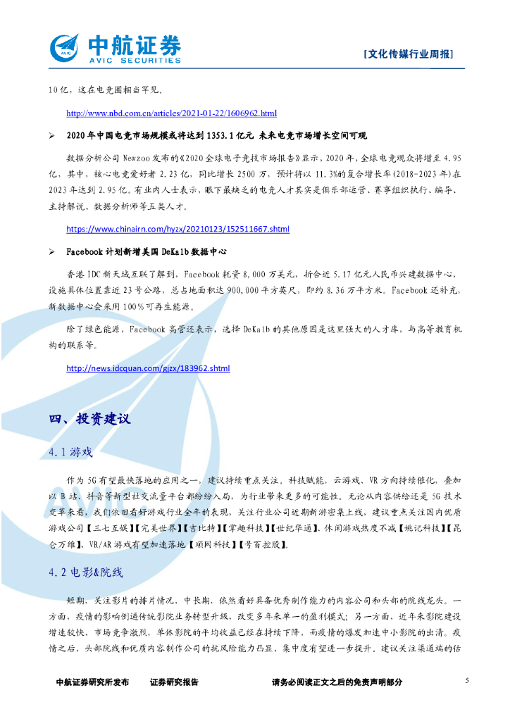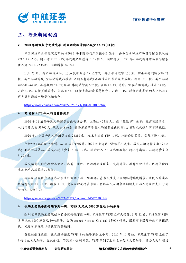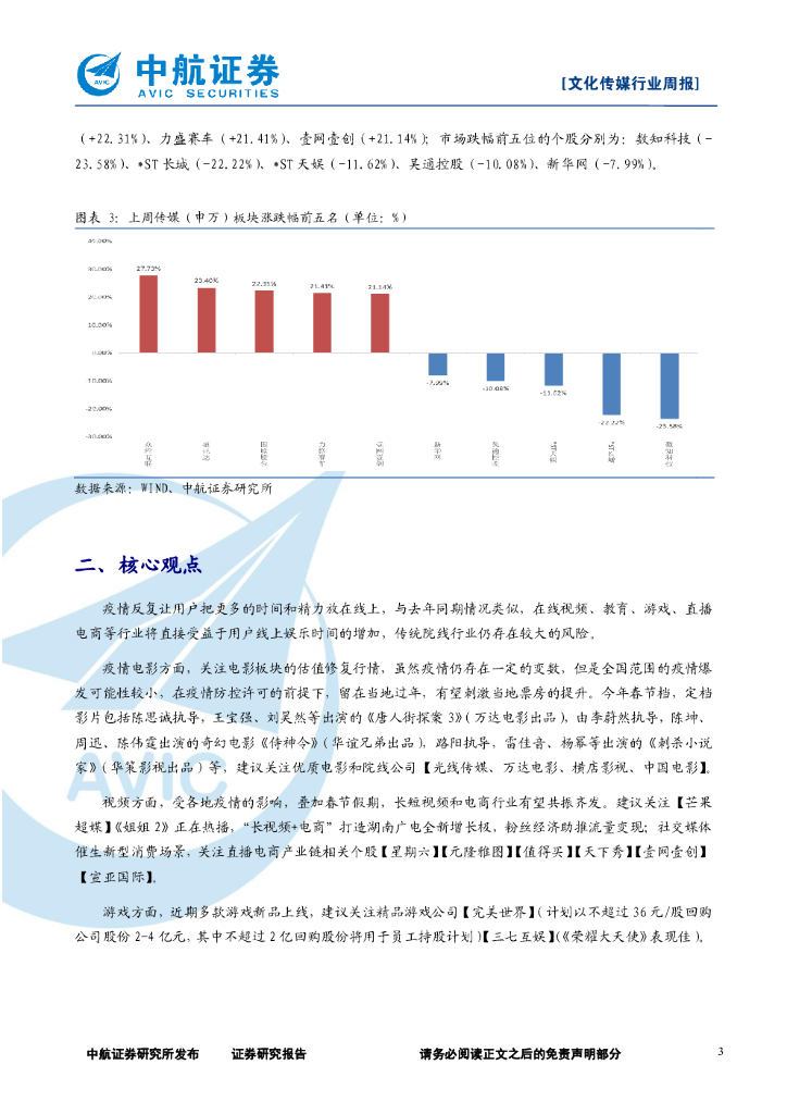 中航证券:文化传媒行业周报:疫情防控叠加春节假期影响,关注在线视频、游戏、教育和直播电商行业.pdf