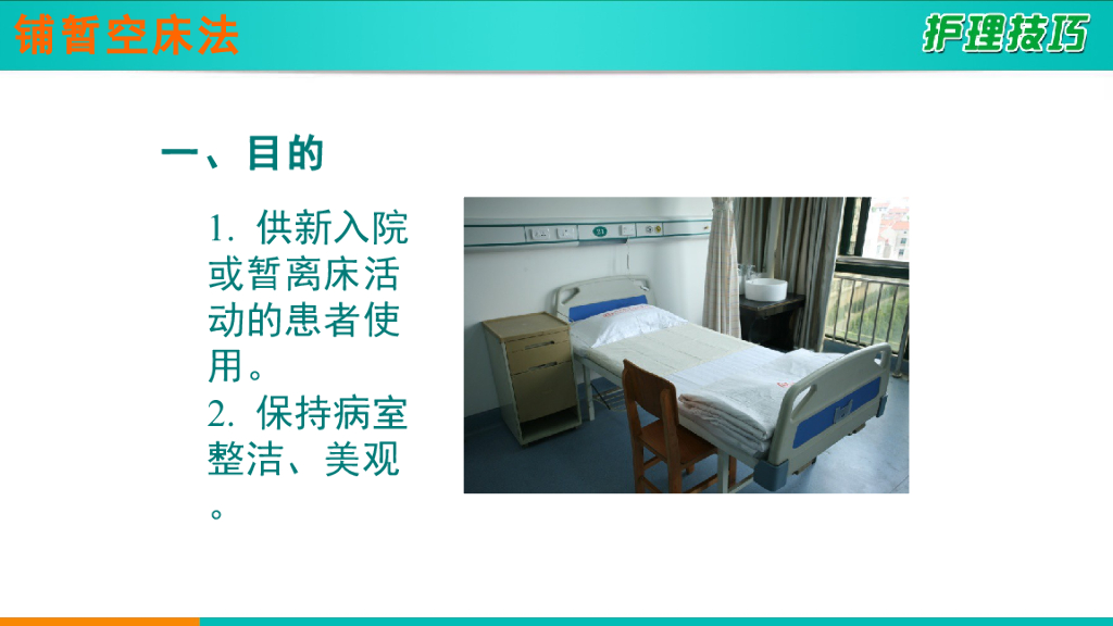 《护理技巧》演示文稿-子任务二 铺暂空床.pdf