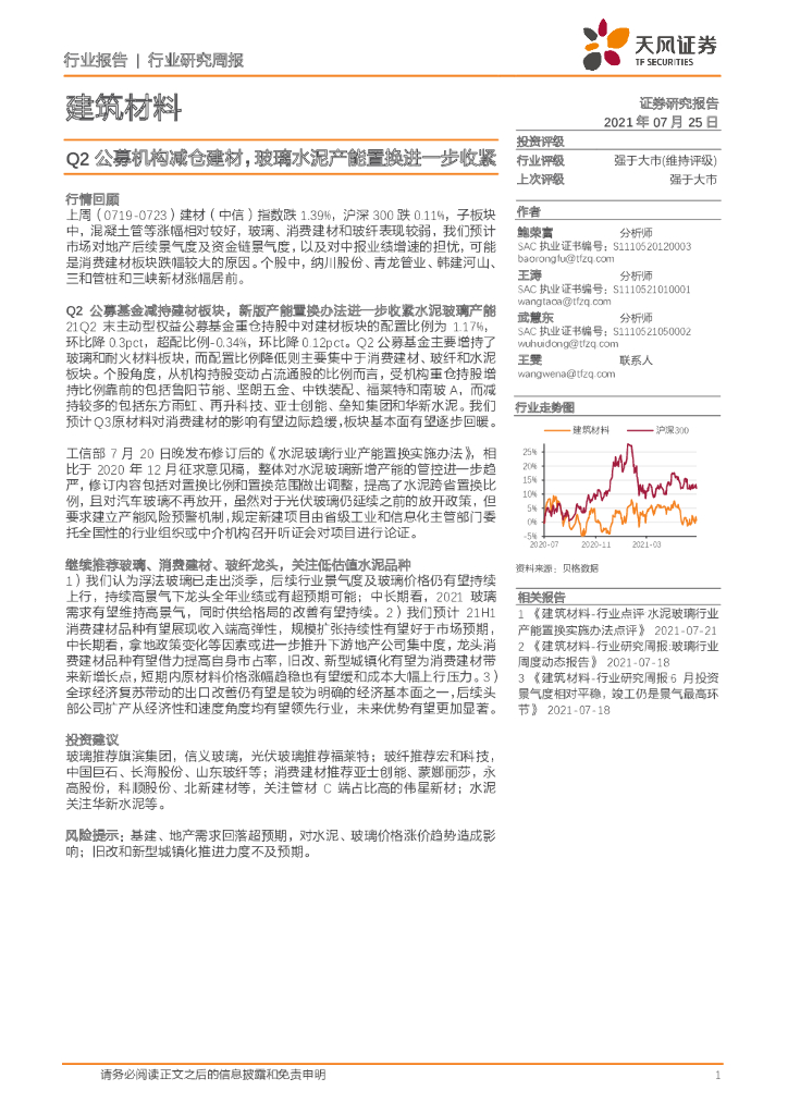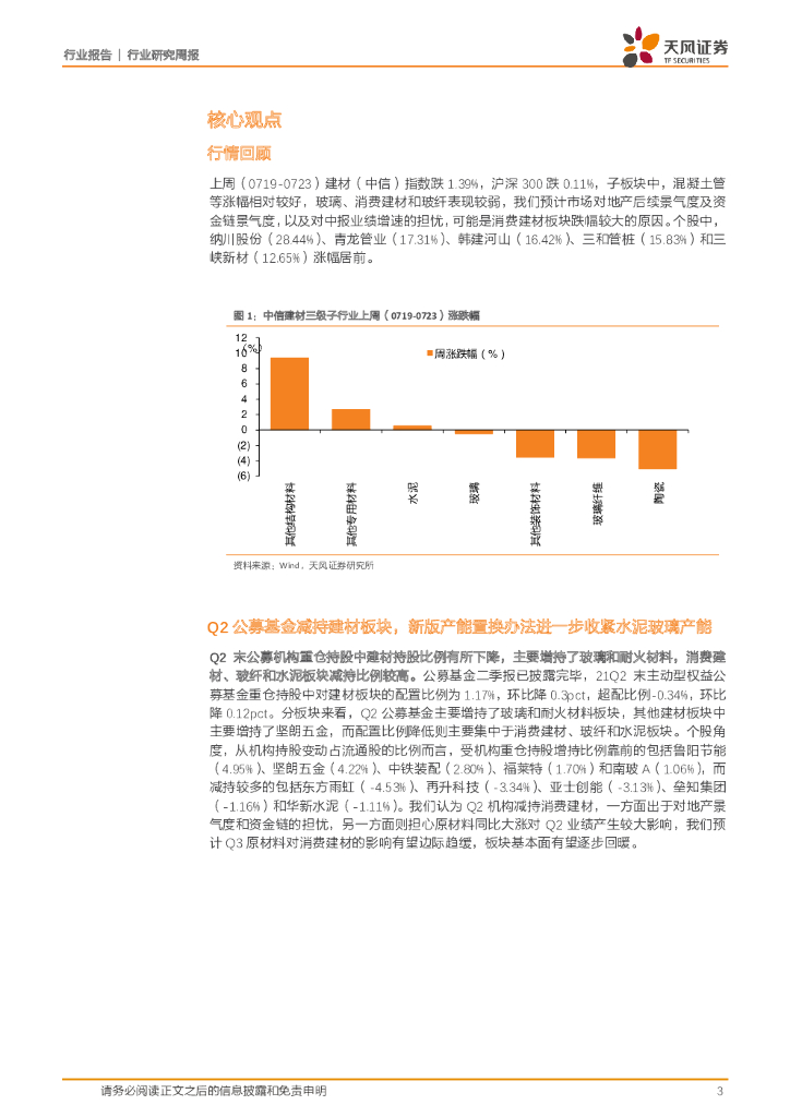 天风证券:建筑材料行业研究周报:Q2公募机构减仓建材,玻璃水泥产能置换进一步收紧.pdf