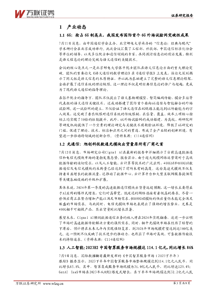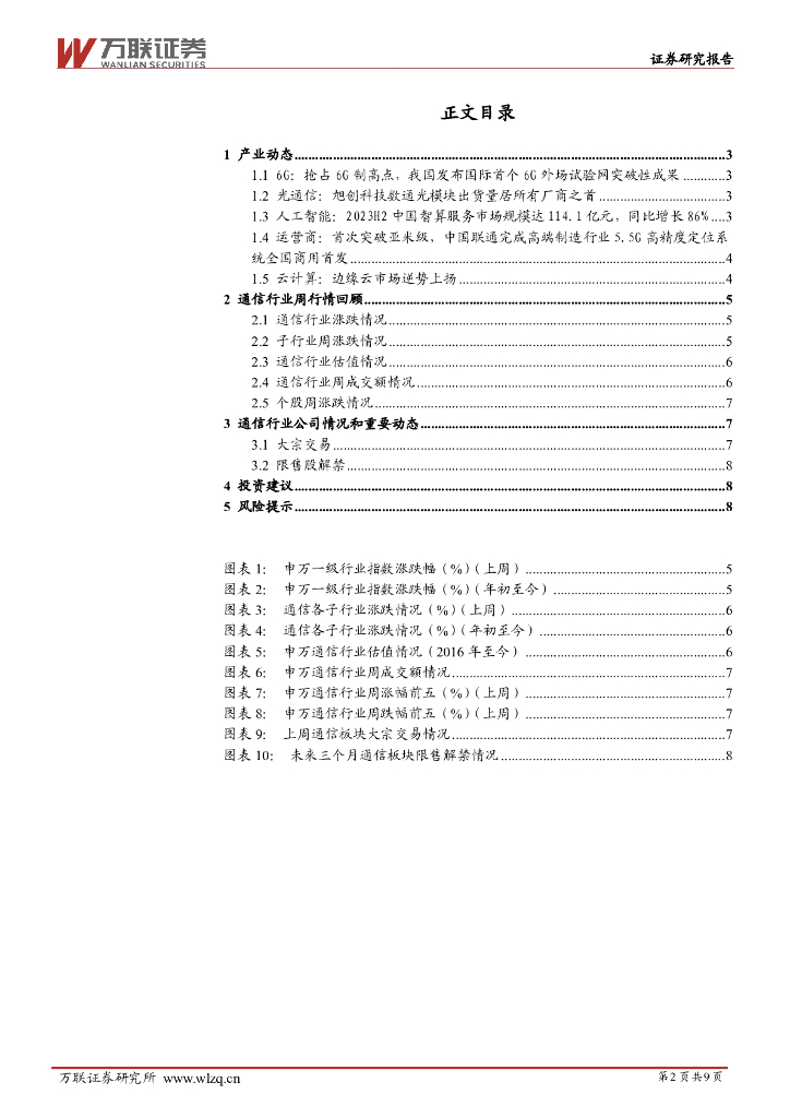 万联证券:通信行业周观点:我国发布国际首个6G外场试验网突破性成果.pdf