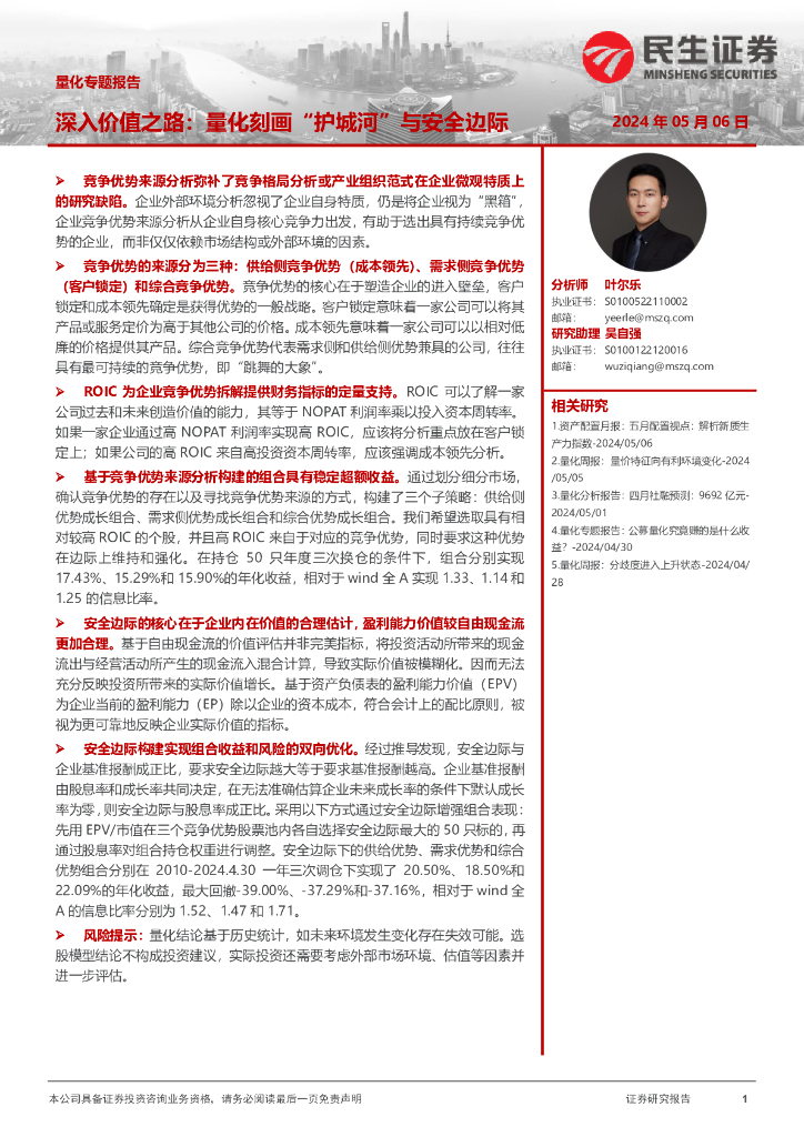 民生证券:量化专题报告:深入价值之路:量化刻画“护城河”与安全边际.pdf