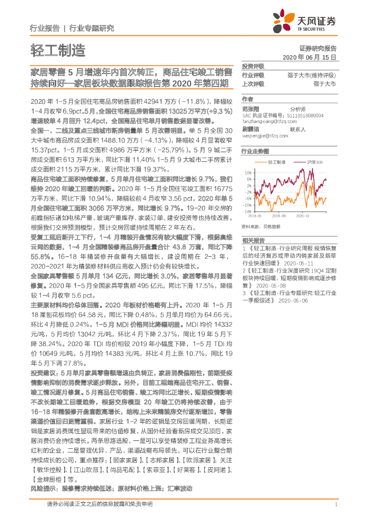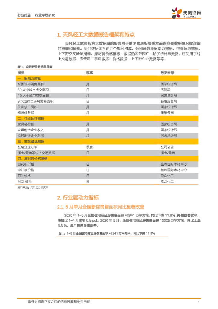 天风证券:家居板块数据跟踪报告第2020年第四期:家居零售5月增速年内首次转正,商品住宅竣工销售持续向好.pdf