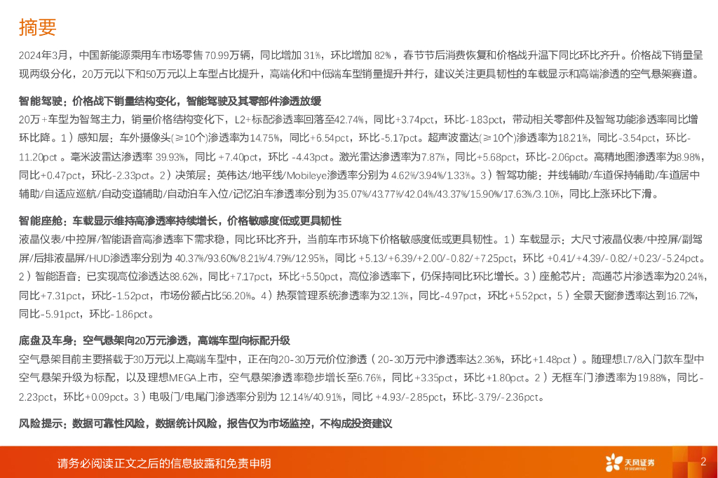 天风证券:汽车零部件渗透率数据跟踪——24M3:高端化和低价化并举,建议关注空气悬架和车载显示.pdf