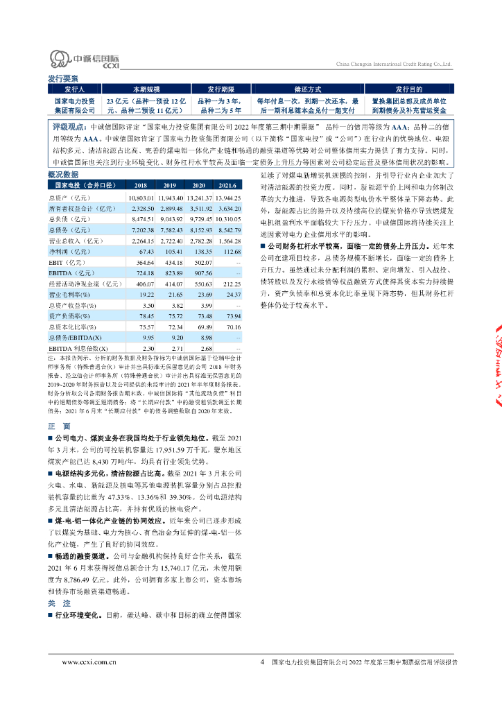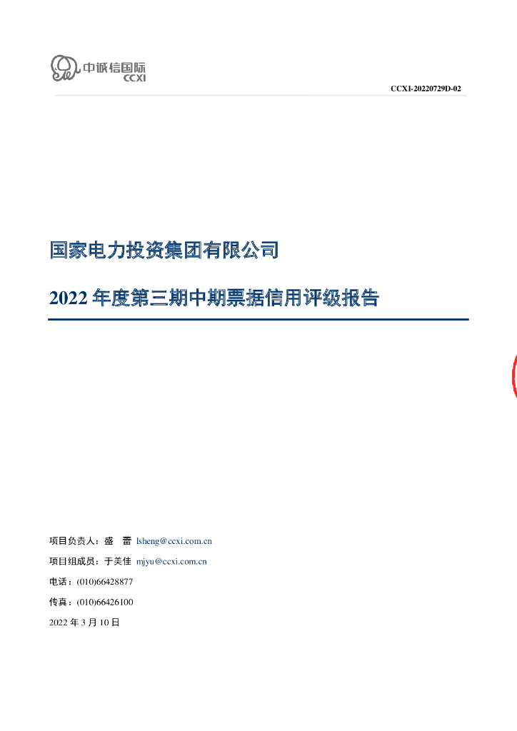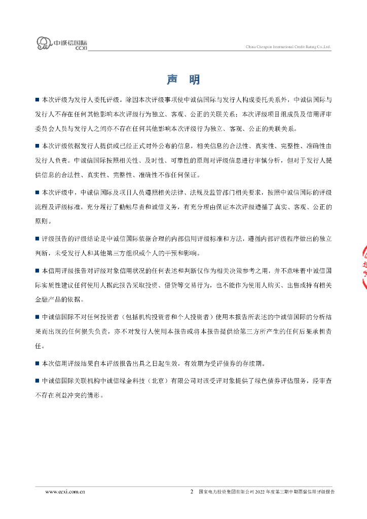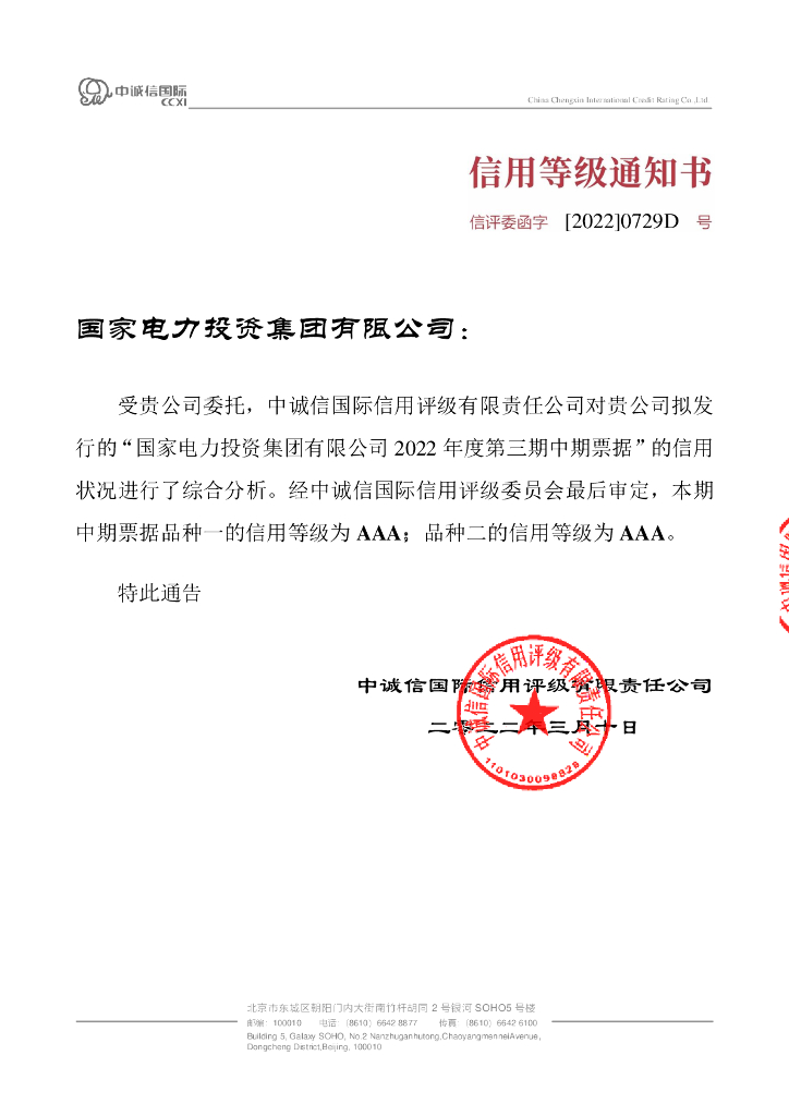 中诚信:国家电力投资集团有限公司2022年度第三期中期票据信用评级报告.pdf