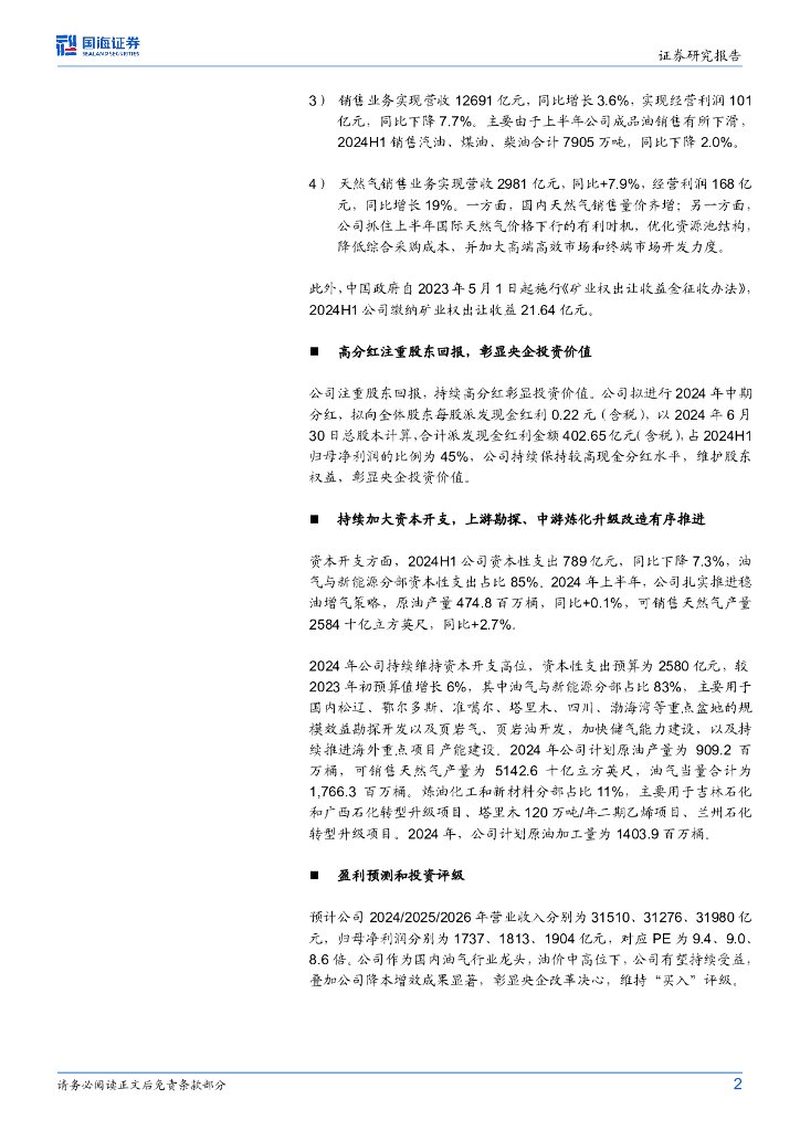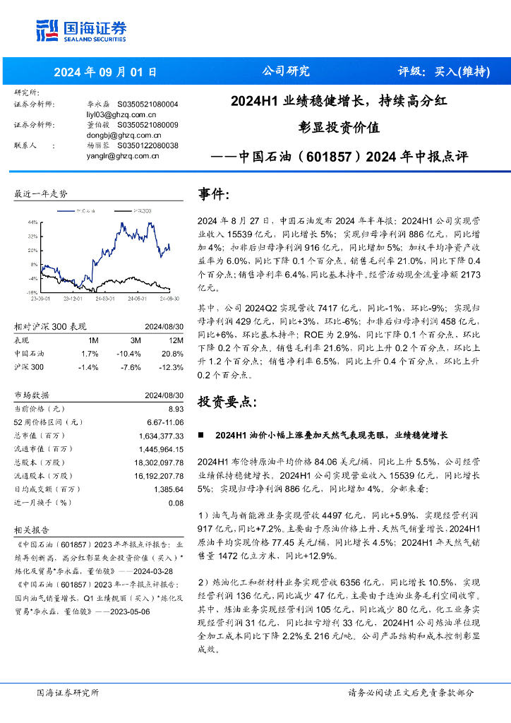 国海证券:中国石油(601857)-2024年中报点评:2024H1业绩稳健增长,持续高分红彰显投资价值.pdf