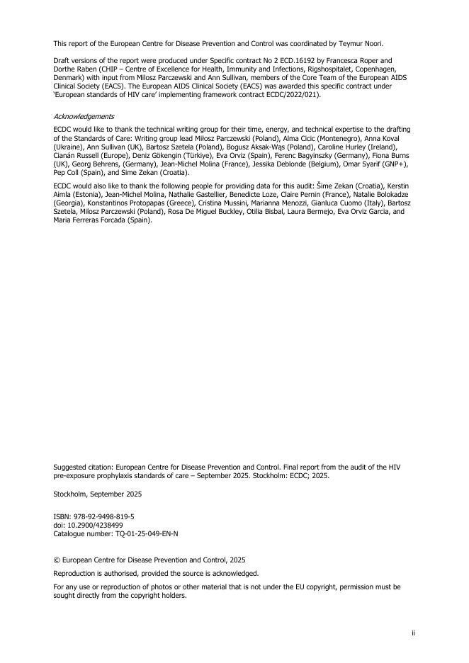 欧洲疾控中心:2025年HIV暴露前预防标准护理审计的最终报告(英文版).pdf