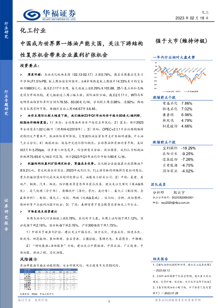 华福证券:化工行业:中国成为世界第一炼油产能大国,关注下游结构性复苏机会带来企业盈利扩张机会.pdf