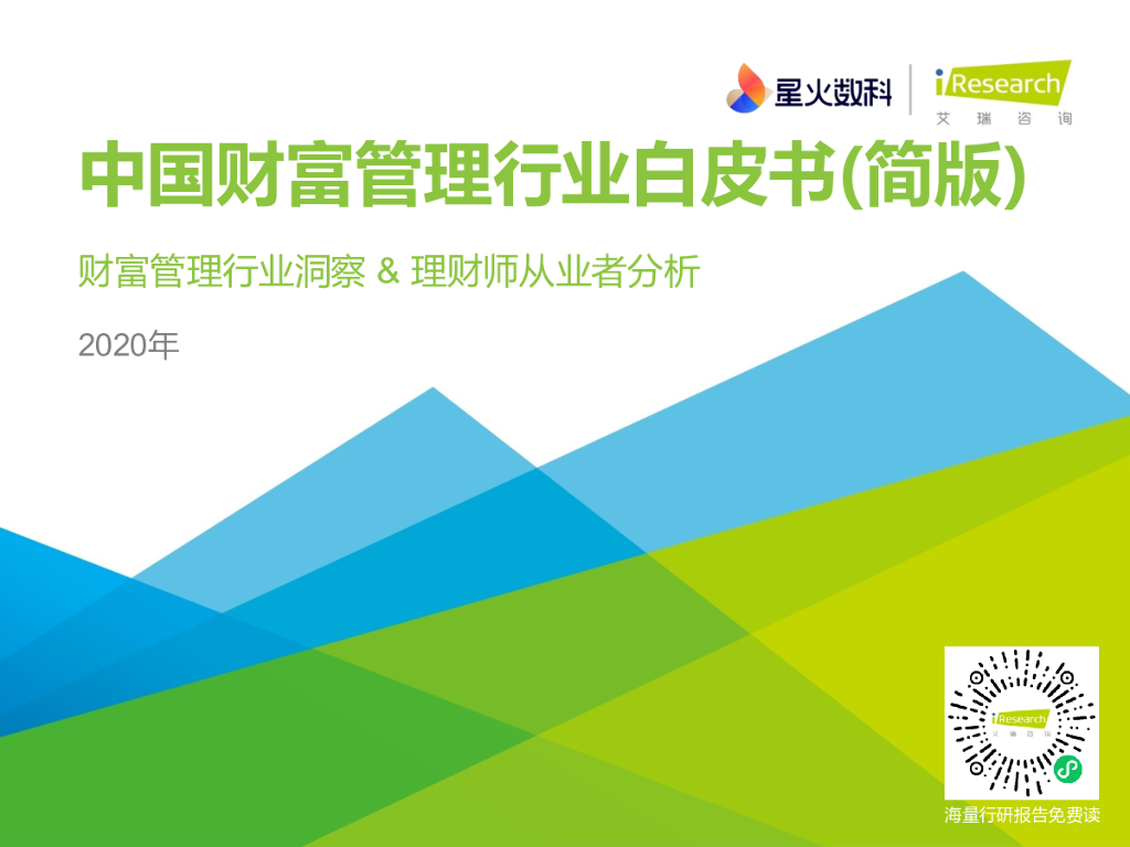 艾瑞咨询:2020年中国财富管理行业白皮书(简版)财富管理行业洞察&理财师从业者分析.pdf