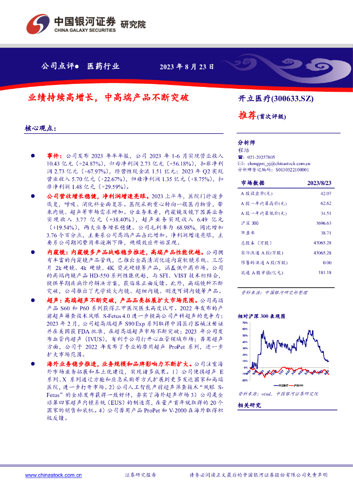 中国银河:开立医疗(300633)-业绩持续高增长,中高端产品不断突破.pdf
