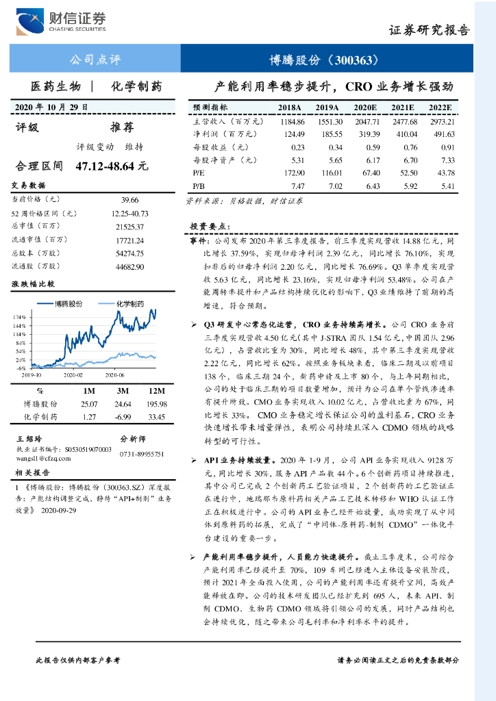 财信证券:博腾股份(300363)-产能利用率稳步提升,CRO业务增长强劲.pdf