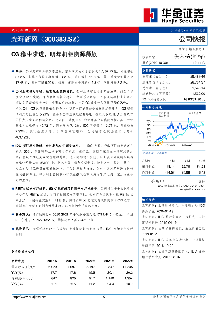 华金证券:光环新网(300383)-Q3稳中求进,明年机柜资源释放.pdf
