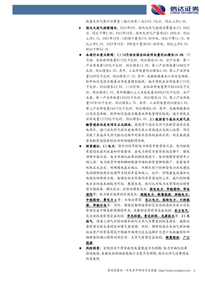 信达证券:公用事业行业电力天然气周报:广东明确26年电价区间,9月我国天然气产量同比增长9.4%