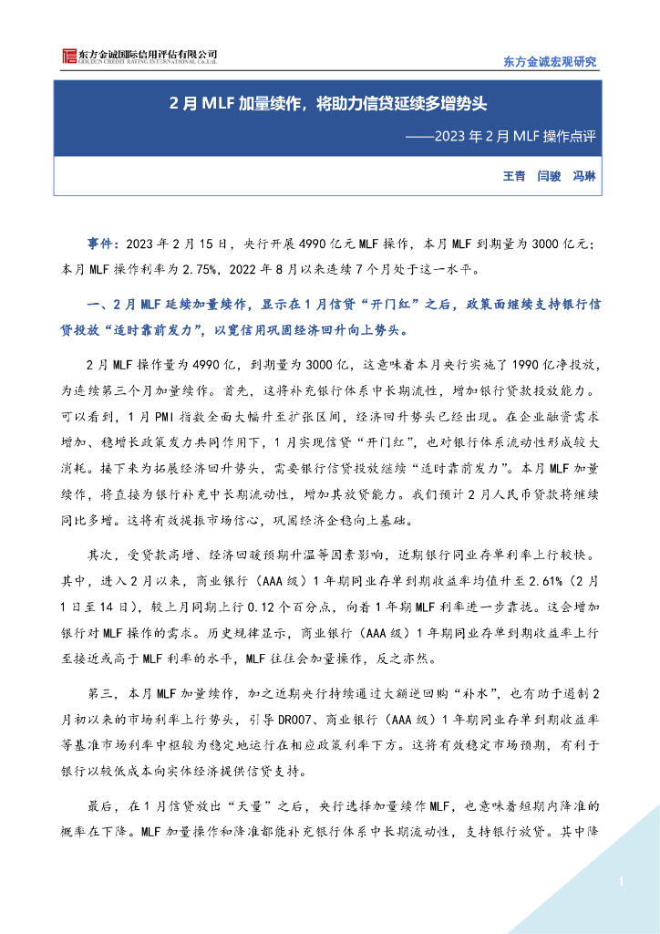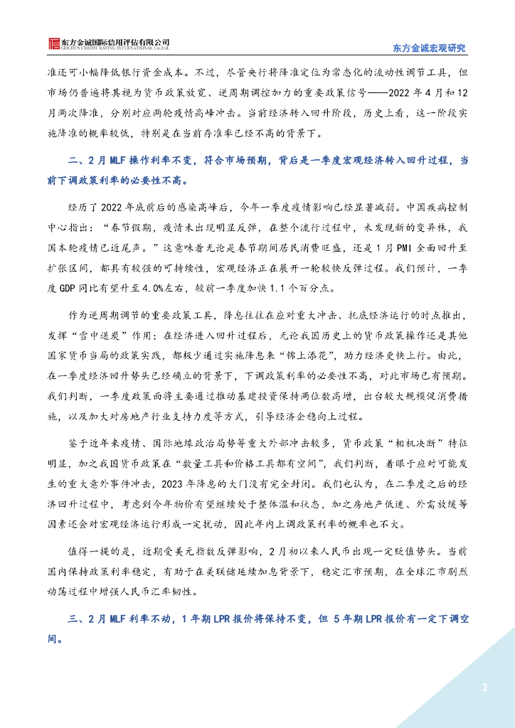 东方金诚:2月MLF加量续作,将助力信贷延续多增势头.pdf