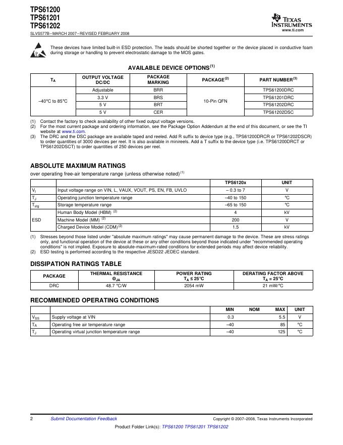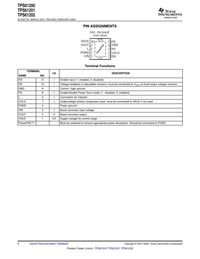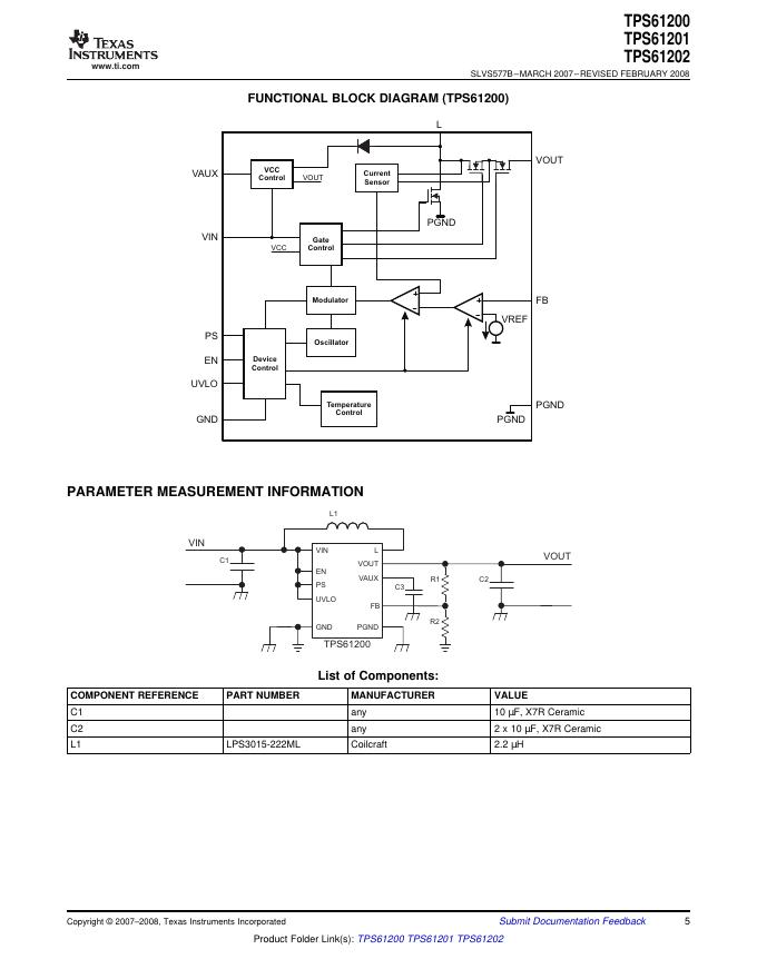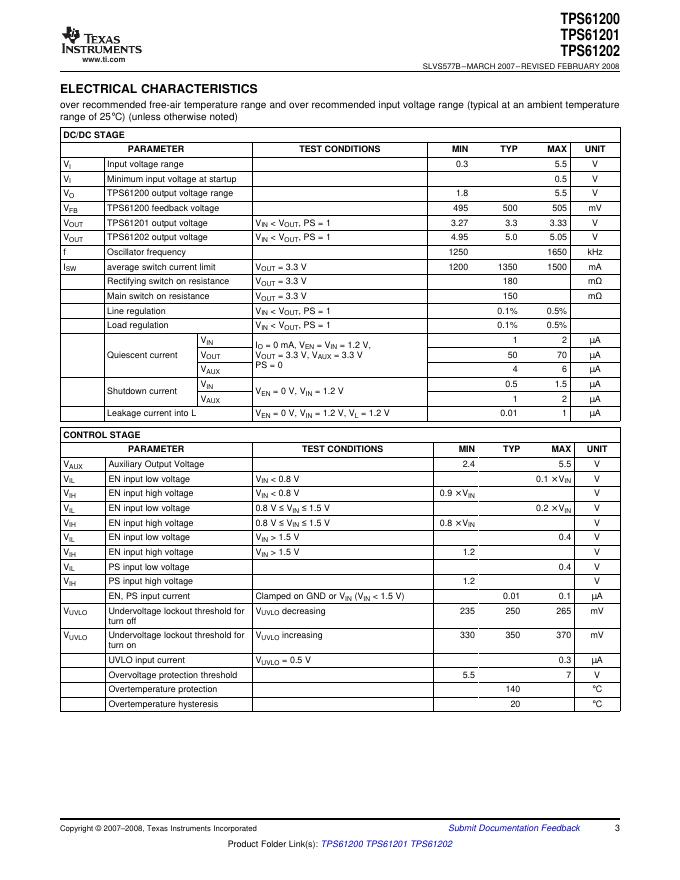TEXAS INSTRUMENTS -TPS61200 TPS61201 TPS61202 LOW INPUT VOLTAGE SYNCHRONOUS BOOST CONVERTER WITH 1.3-A SWITCHES 数据手册.pdf