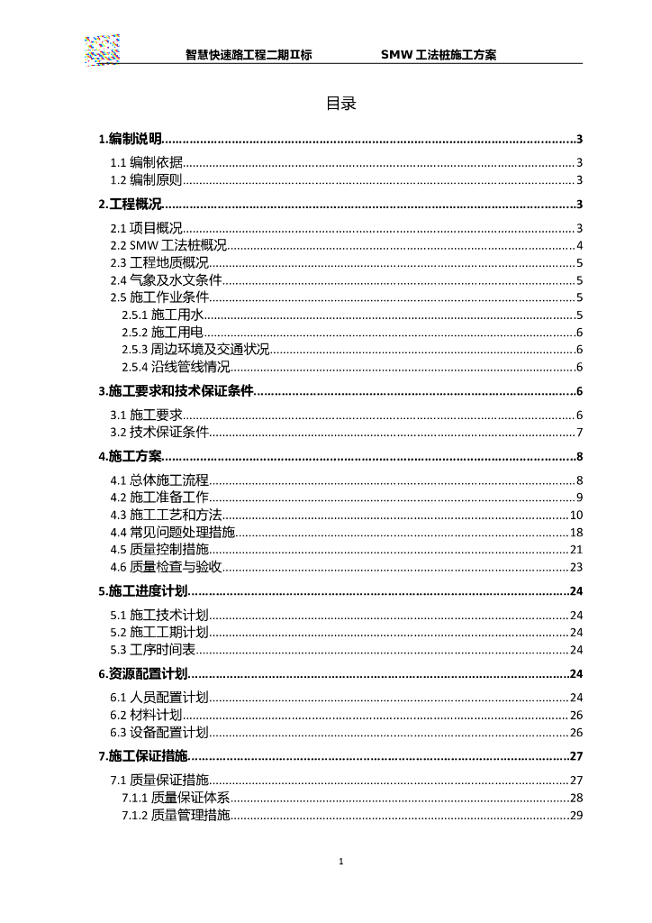 智慧快速路工程SMW工法桩施工方案(2021年).doc