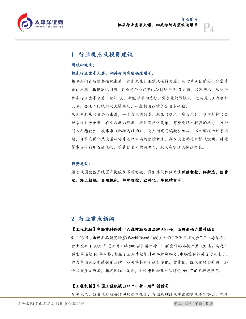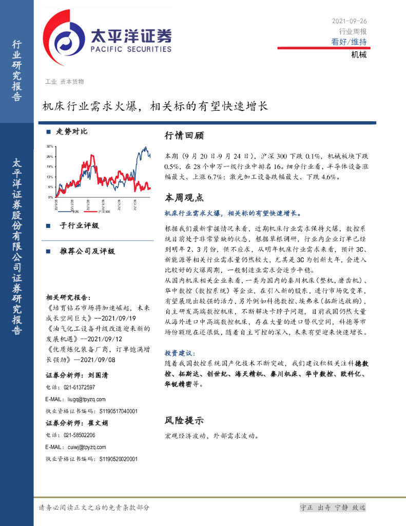 太平洋证券:机械行业周报:机床行业需求火爆,相关标的有望快速增长.pdf