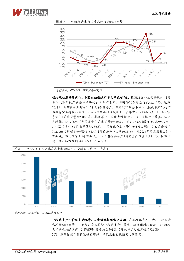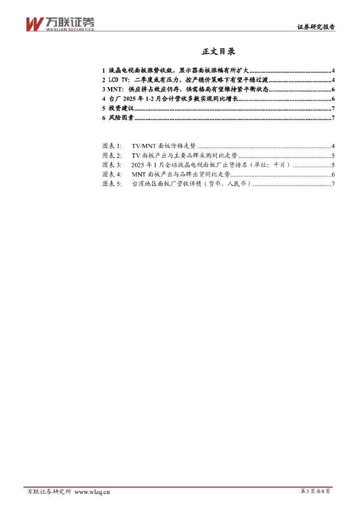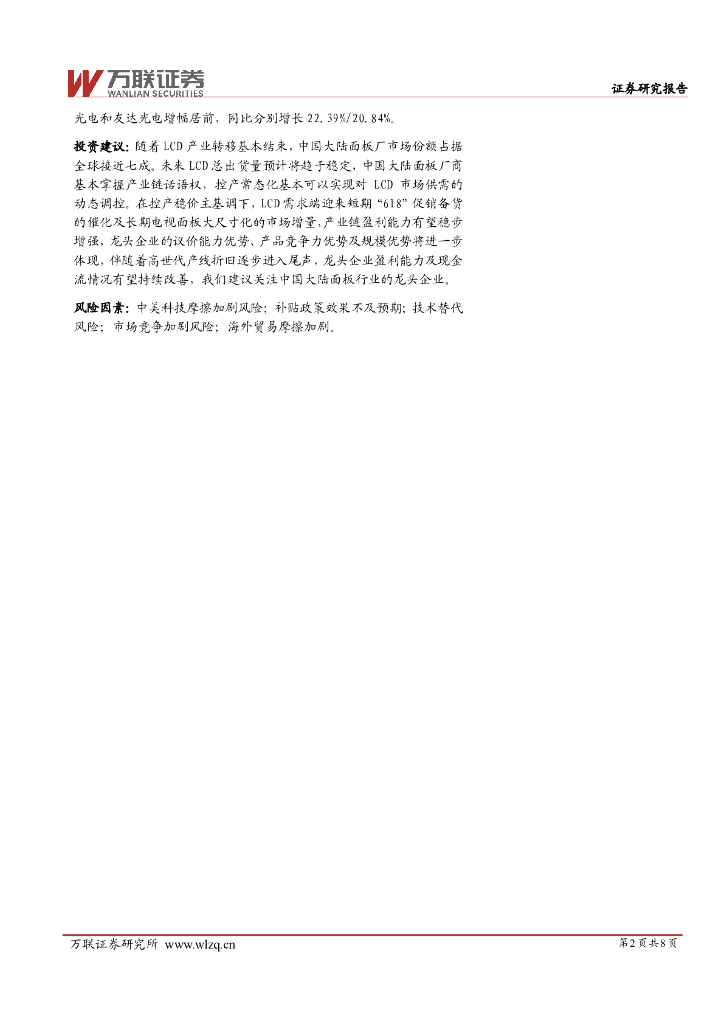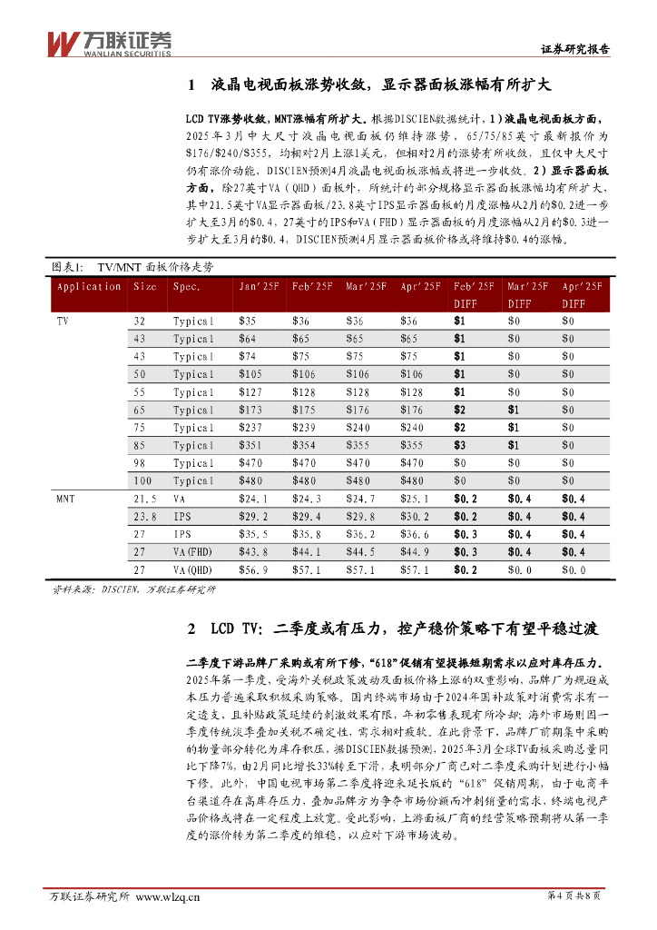万联证券:电子行业跟踪报告:液晶电视面板涨势收敛,显示器面板涨幅扩大.pdf